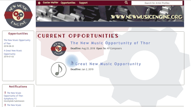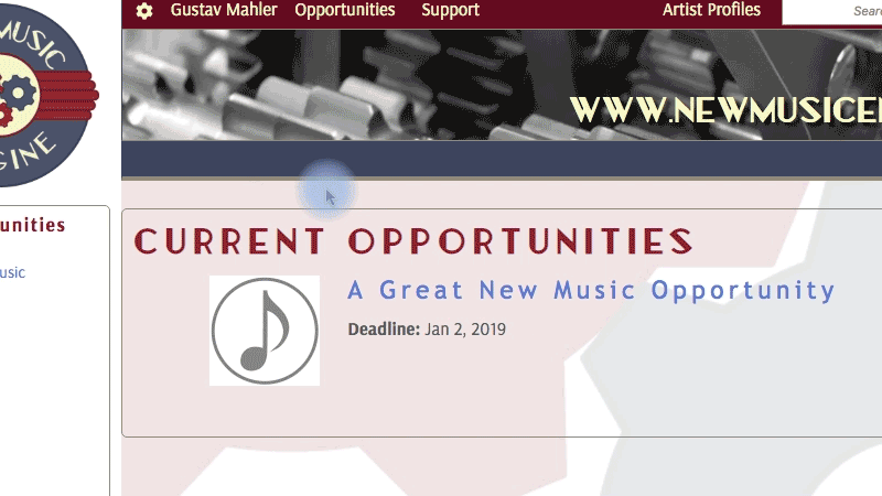 New Music Engine is a great way for organizations, ensembles and musicians to reliably receive submissions online.